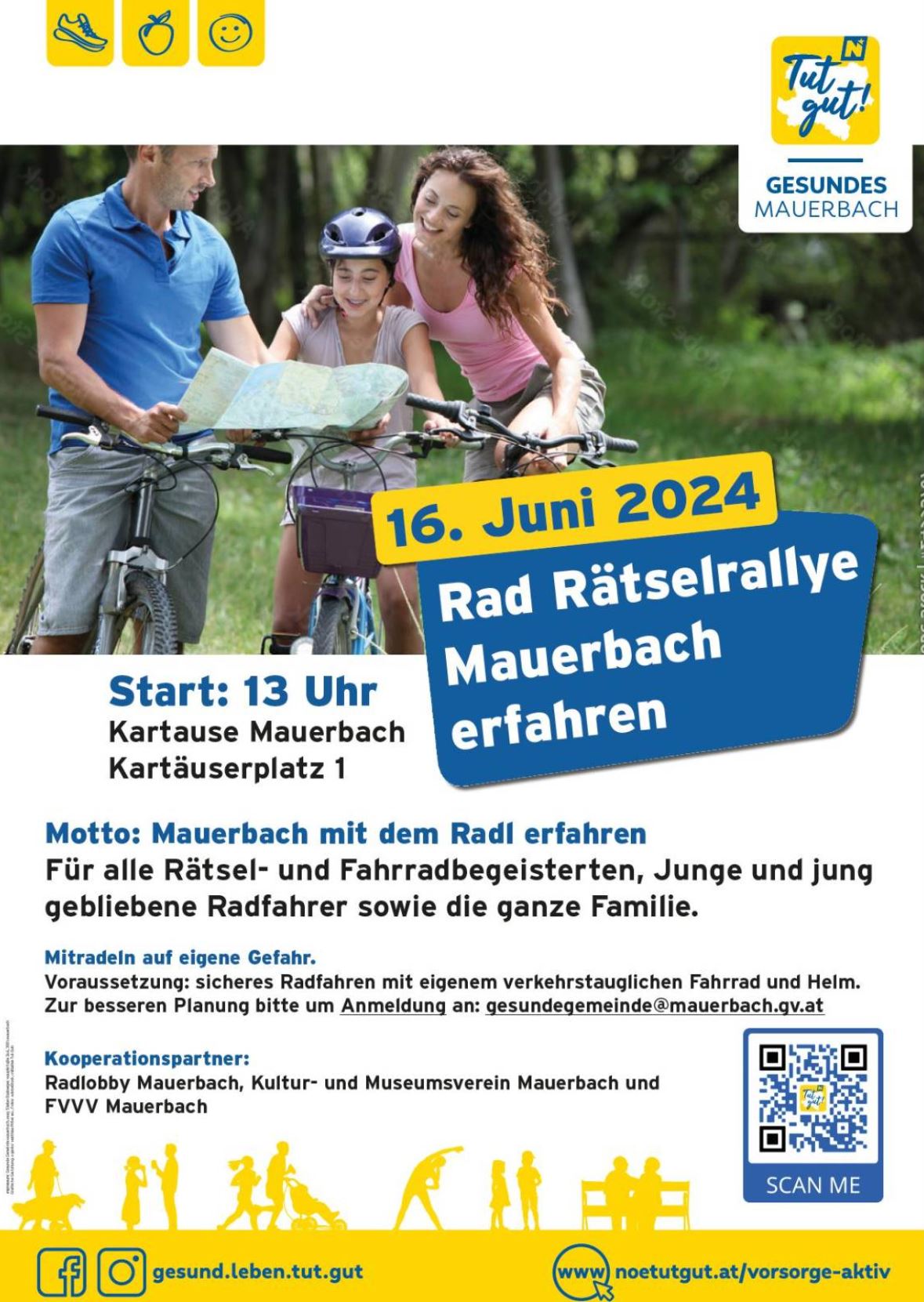 - SO, 16. Juni 2024 ab 13 Uhr eine Rad-Rätselrallye – Mauerbach erfahren für alle Radfahrgenerationen!