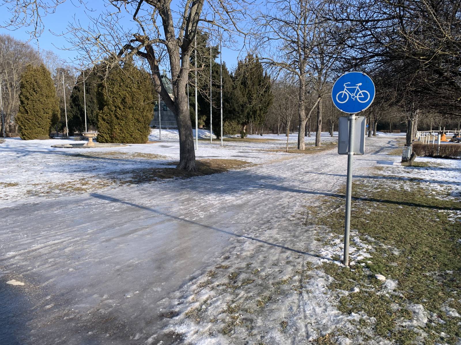 Diesen Winter war’s mit Eis und Schnee ganz schlimm, und Teile des “Radwegs” – der ja freilich auch für Spaziergänger da ist – war kaum benützbar. Wir wissen auch von zumindest einem folgenreichen Sturz nahe dem Akademiebad. Der Erhalter sichert sich mit Tafeln ”Kein Winterdienst – Benützung auf auf eigene Gefahr“ ab. Klar – Schneeräumung ist auf nicht versiegelten Wegen schwer, da müsste man schon nachdenken. Siehe dazu auch “Wiener Neustadt: Probleme bei nicht versiegelten Radwegen”.