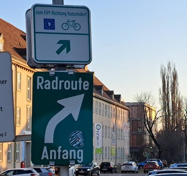 Die Radroute von der Grazerstraße (Druckknopfampel) in Richtung EV9 (über Katzelsdorf) ist großteils vorzüglich. Doch nach den letzten Offiziershäusern beginnt ein leider unbeleuchteter Sand-/ Schotterweg, der nach Tauwetter oder Regen recht gatschig sein kann. Die Route schließt beim Kehrbach an die Unterführung Frohsdorfersiedlung an.