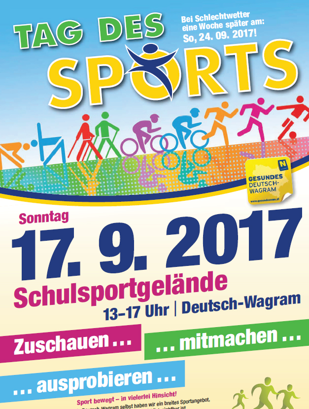 Am 17. September 2017 findet wieder der Tag des Sports statt. Dieses Jahr ist auch die Radlobby Deutsch-Wagram mit dabei. Bei uns können die unterschiedlichsten Fahrräder sowie Fahrradzubehör ausprobiert und auf deren Alltagstauglichkeit getestet werden.