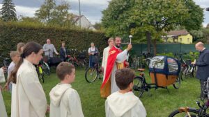 Trotz unbeständigen Wetters kamen am Sonntag 13. September 2025 viele Menschen mit dem „Radl in die Kirche“.