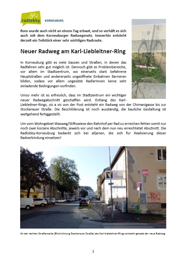 Richard Stawa 14. Oktober 201814. Oktober 2018 Allgemein, Radlobby Korneuburg, Radlobby Niederösterreich