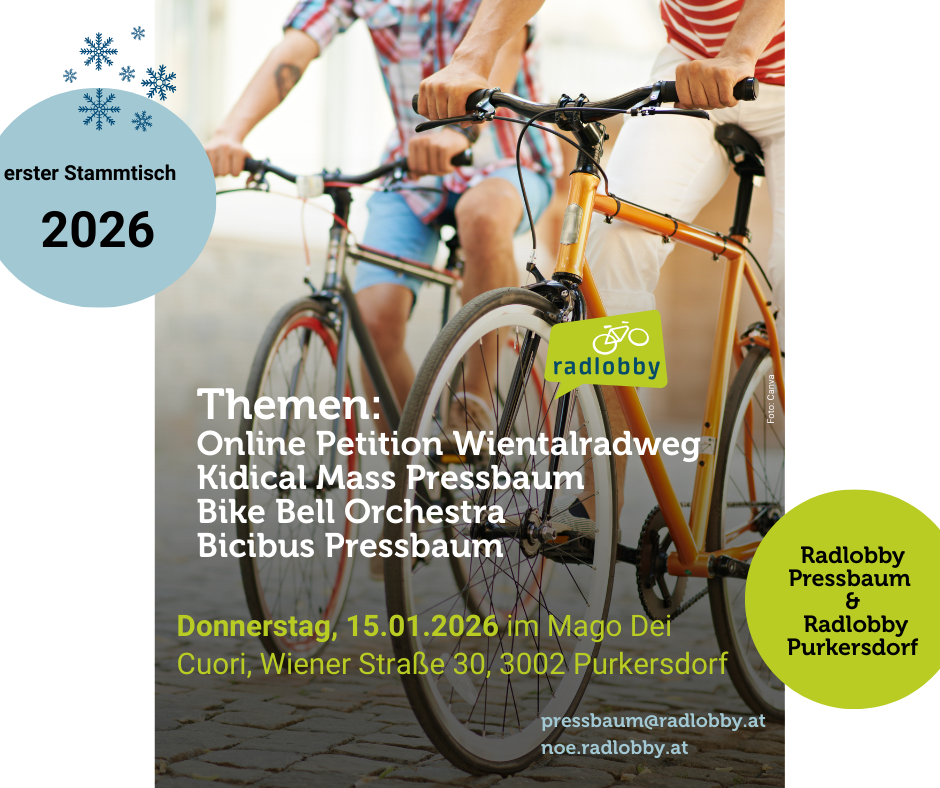Einladung Stammtisch der Radlobbygruppe Krems u.U. am 22.1.2026, 18:30 Uhr im Salzstadel in Stein Gast: Dipl. Päd. Alexandra Ambrosch, BEd, Stadträtin (Umwelt und Mobilität) …