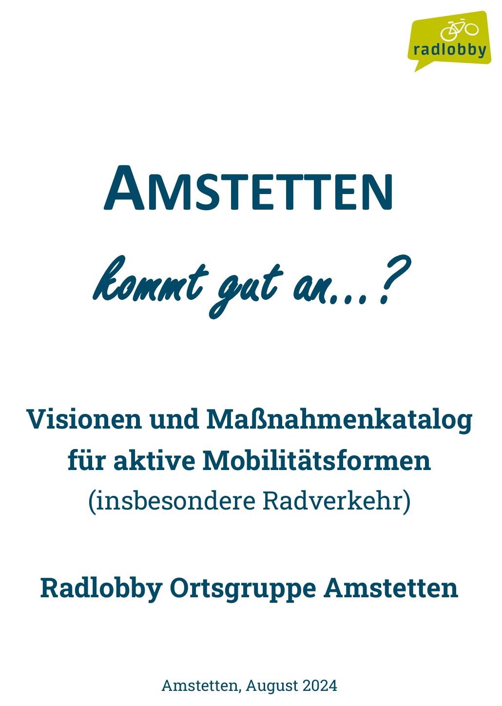 Dazu hat die Radlobby Amstetten einen Maßnahmenkatalog erstellt, der Problemstellen sowie neue Verbindungen aufzeigt. Damit der Slogan der Stadtgemeinde Amstetten (“Amstetten kommt gut an”) auch für den Radverkehr gilt, sind Maßnahmen in die Infrastruktur für den Radverkehr nötig.