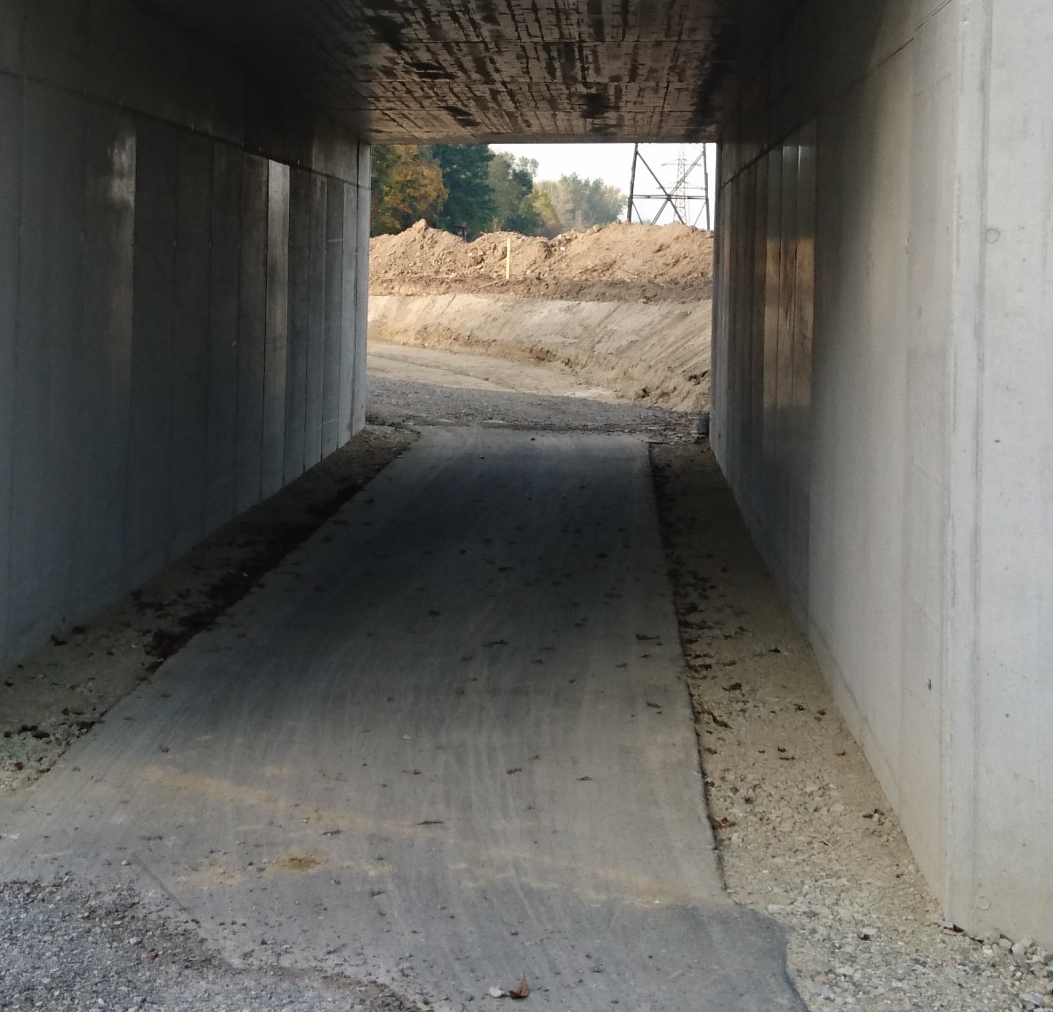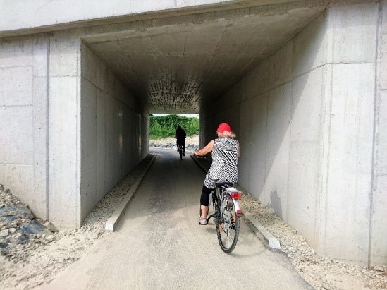 - neue Auf- und Abfahrten mit größerem Anfahrtsradius gebaut, die eine bessere Sicht auf den nun 3m breiten Unterführungsbereich ermöglichen.