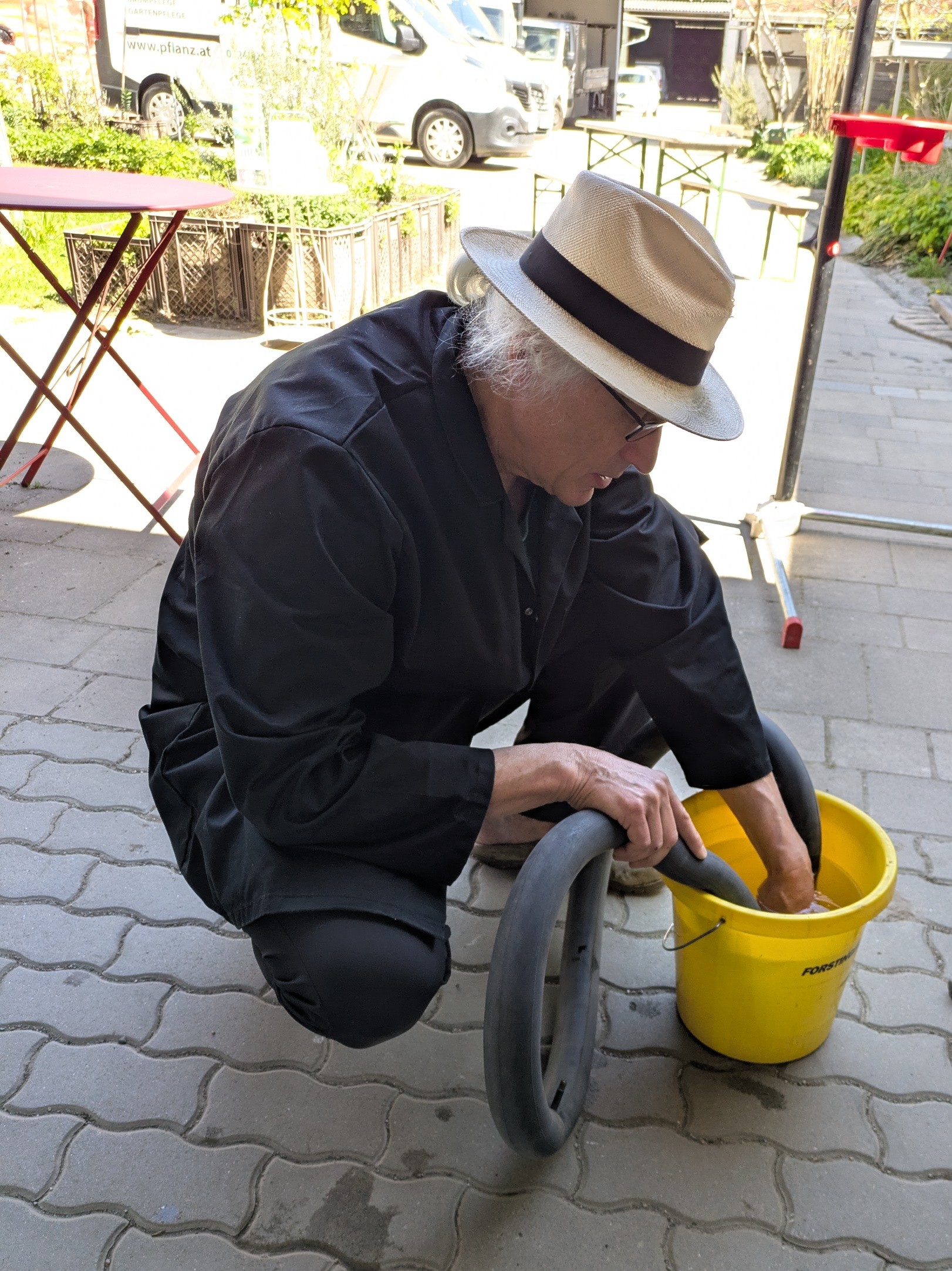 Zuerst wurde mit einer Schulung über die verschiedenen Fahrradventile gestartet. Zum Aufpumpen empfiehlt Alfred eine große Pumpe mit Manometeranzeige. Diese Pumpen sind für alle Ventile geeignet und man benötigt daher keine Adapter. Das ist praktisch und die Pumpen können mit relativ wenig Kraftaufwand betrieben werden.