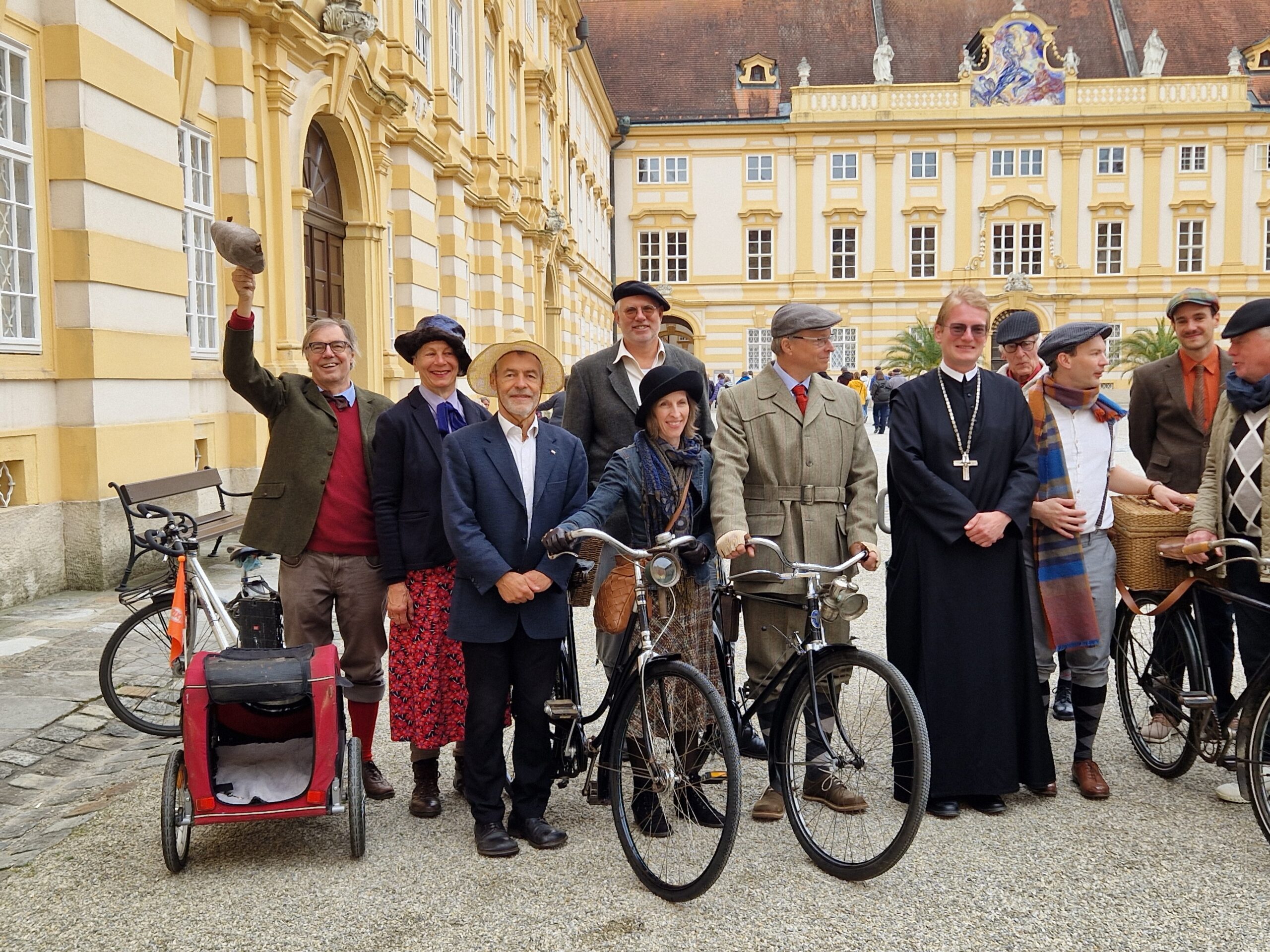 Die nostalgisch schick gekleideten Radfahrerinnen und Radfahrer, viele auf sehenswerten historischen Fahrrädern, fanden sich unter den ungläubig staunenden Augen der Stiftsbesucher im Prälatenhof ein. Und…