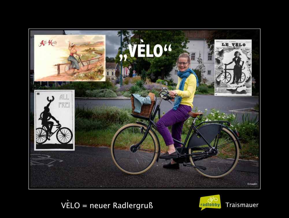 Beim 3. NÖ Radlobbytag am 1. März 2025, wo die beiden Vorschläge beim „Traismaurer Marktstand“ zum 1. Mal zur Diskussion gestellt wurden, bekam der Gruß „Vélo“ bei der Umfrage mit Abstand die meiste Zustimmung. Erfreulicher Weise gab es aus der Reihe der Teilnehmer noch weitere Grußvorschläge wie „Servus die Radeln“ (RL Mauerbach u. RL Gmünd), „All Rad“ (RL Melk), Vello (RL Klosterneuburg) und „Radfroh“ (RL Traismauer).
